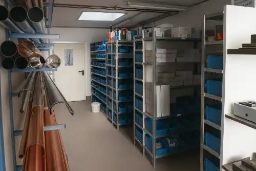 Ein gut organisiertes und übersichtlich strukturiertes Lager ist die Grundlage für schnelle Reaktionszeiten im Servicefall. Alle wichtigen Ersatzteile, Werkstoffe und Komponenten für Reparaturen sowie Installationen sind jederzeit in ausreichender Menge vorhanden und sofort einsatzbereit – für effiziente Abläufe und höchste Kundenzufriedenheit.